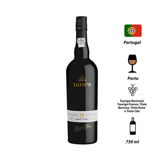 Em um estilo delicado, o Dow’s 10 Anos mostra notas de amêndoas, gengibre em compota, damasco, chocolate e figo. Estruturado, macio e cheio de camadas, tem um final de boca marcado por especiarias. O Vinho do Porto Dow’s 10 Anos é assinado pela Dow’s, uma das mais tradicionais casas de vinhos do Porto e que hoje faz parte do grupo Symington Family Estates. Elaborado por Charles Symington, como enólogo, a partir de um corte de uvas do Douro, como Touriga Nacional, Touriga Franca, Tinta Barroca, Tinta Roriz e Tinto Cão.